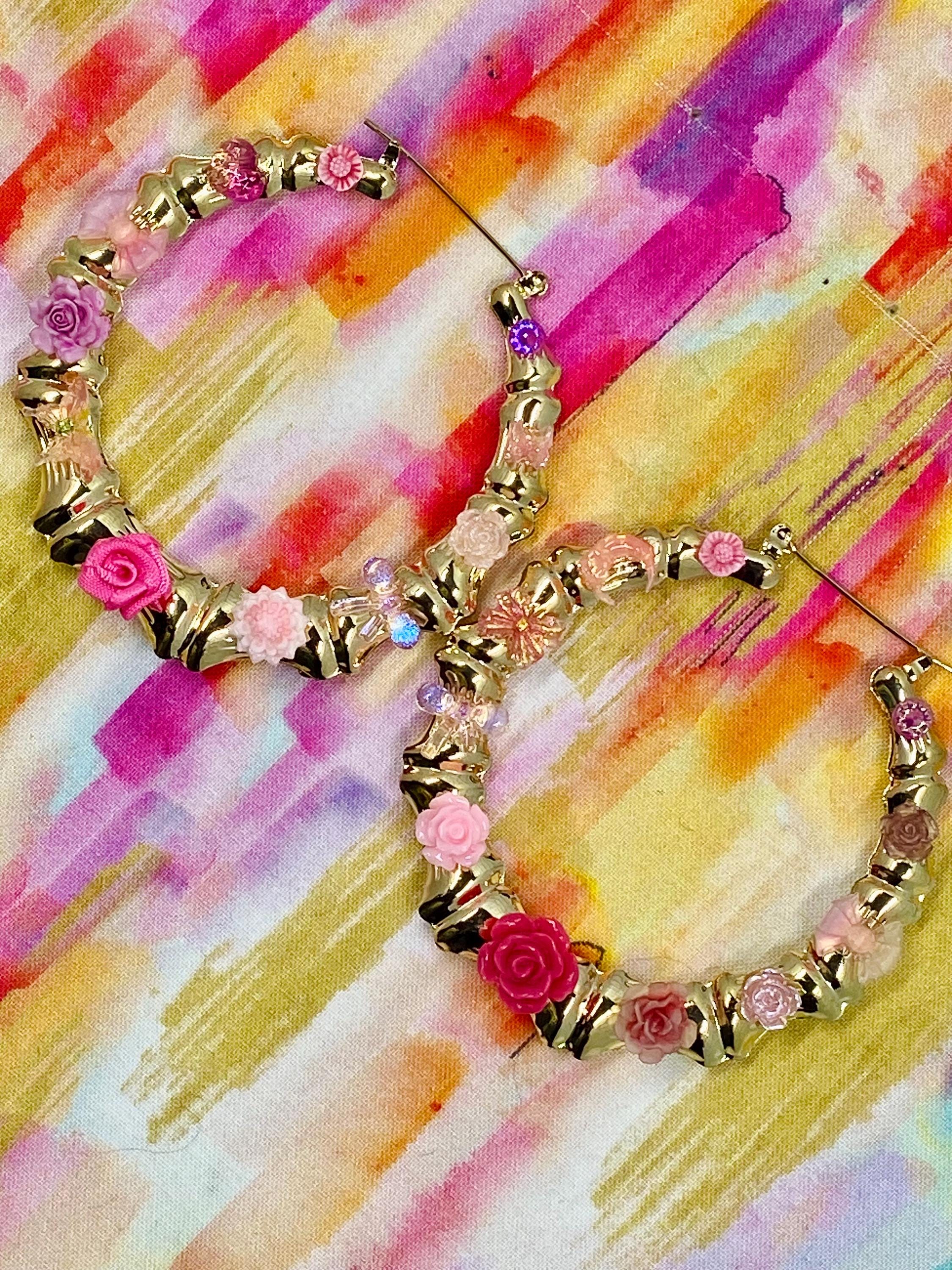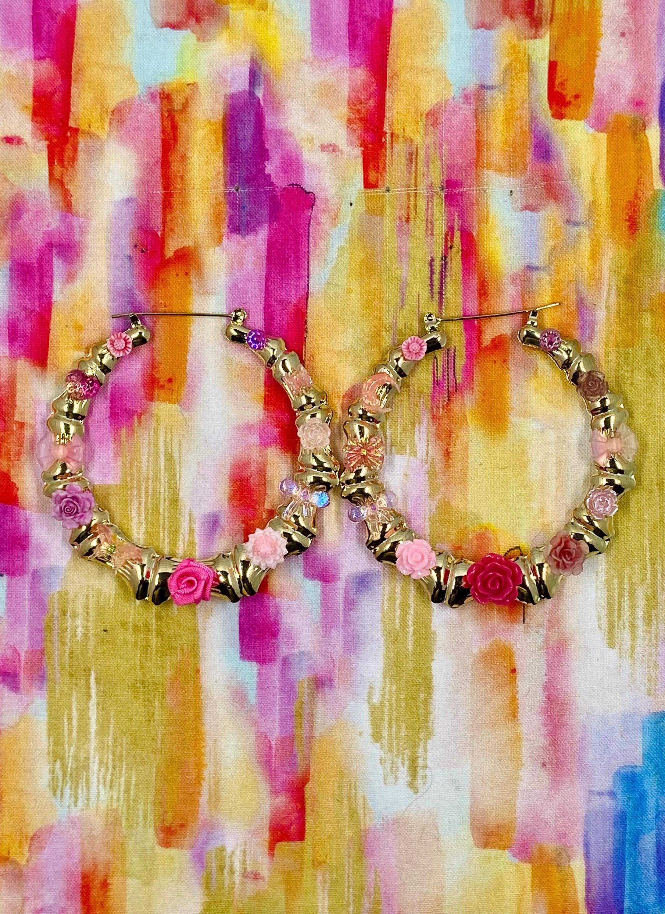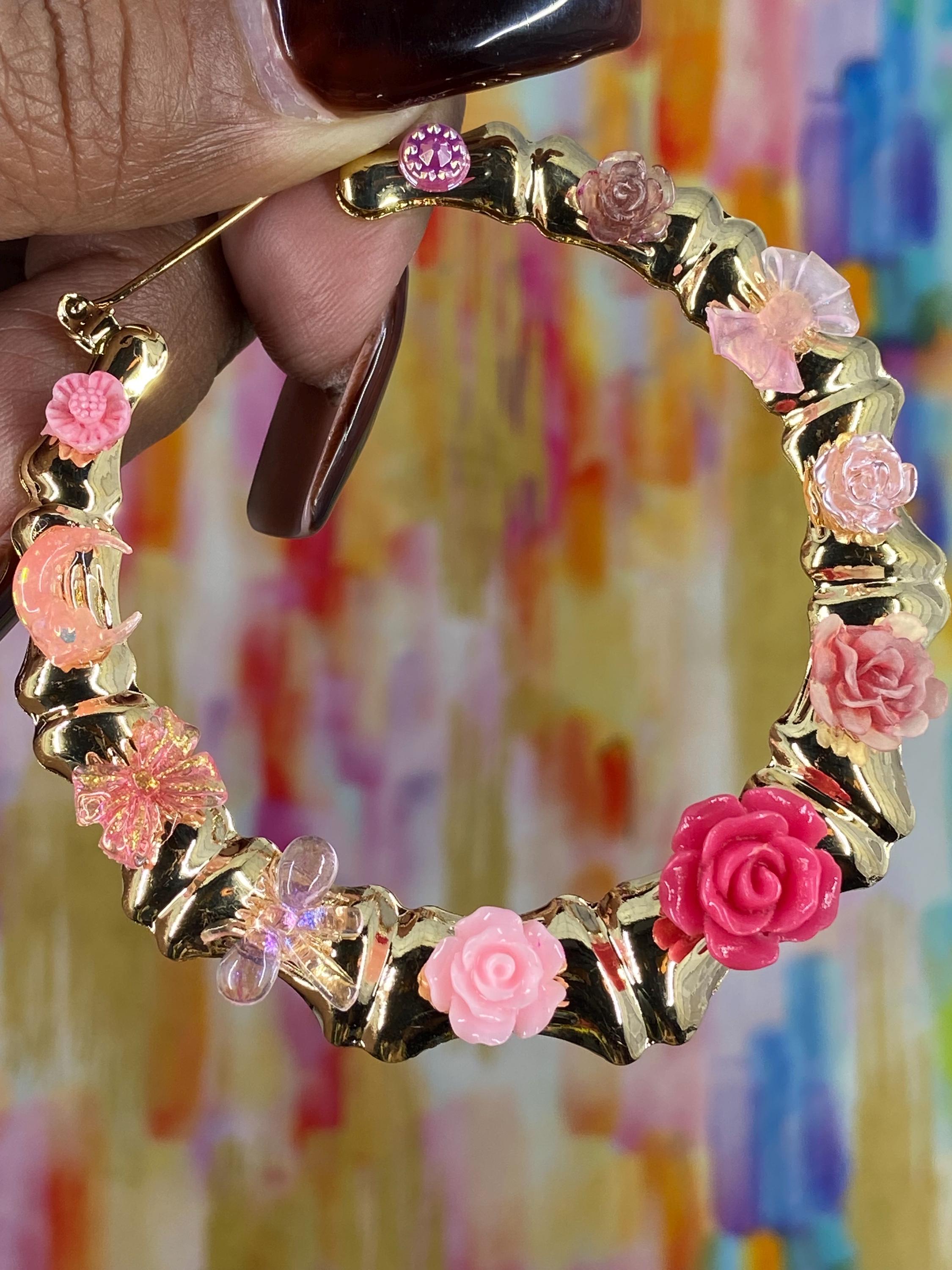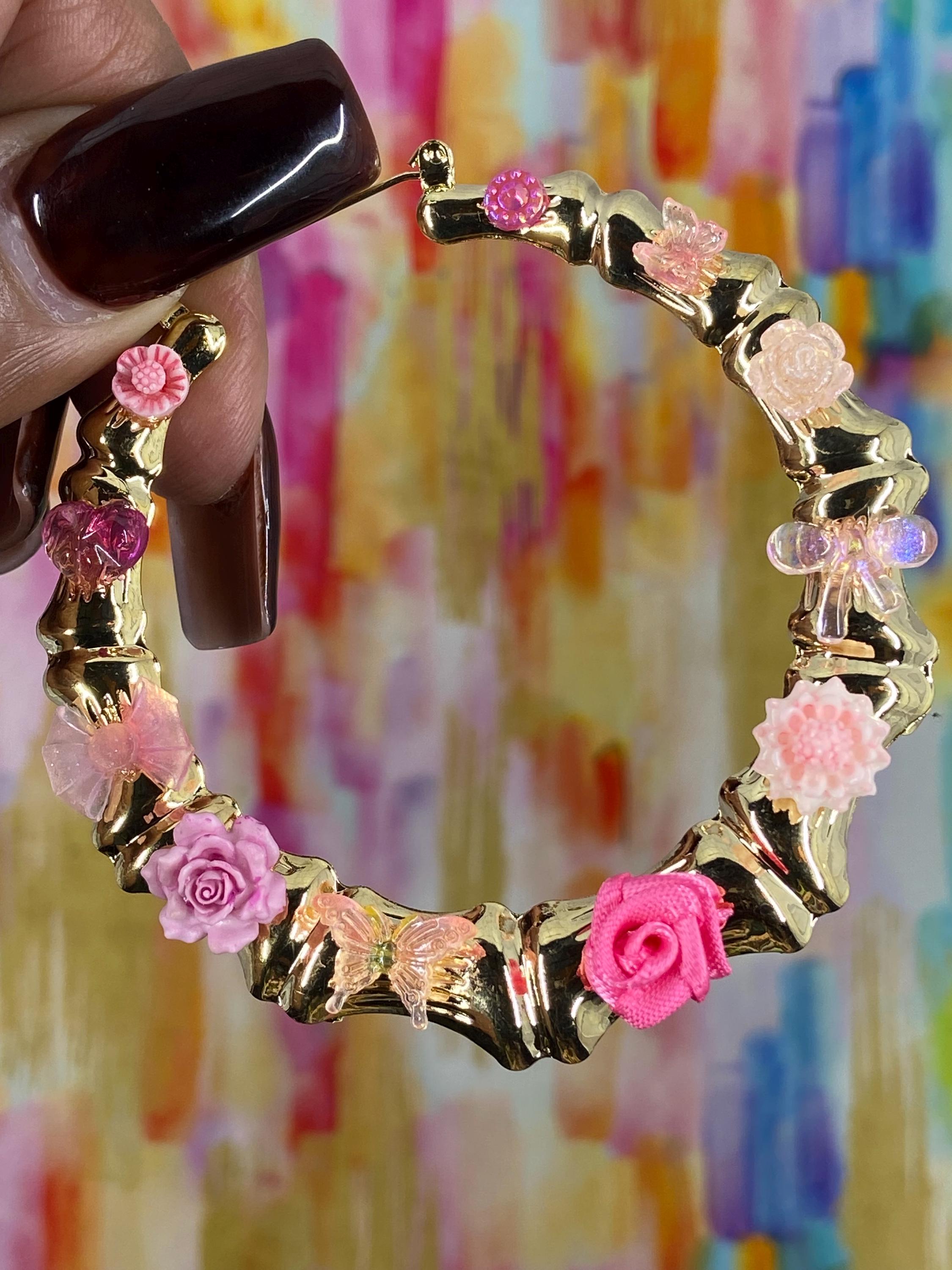 FAUX GOLD BAMBOO CHARM JUNK EARRINGSFLOWERS, BOWS, BUTTERFLIES, HEARTS, MOONONE OF A KIND